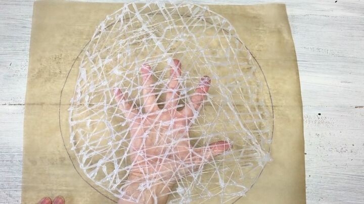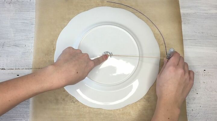 Dolabınızdan bir tabak çıkarın, balmumu kağıdınızı baş aşağı yerleştirin ve etrafını çizin. Çevrenizin eğrilmesini engellemek için bir numaraya ihtiyacınız varsa, bir işaretleyiciye bir ip bağlayın ve ipi tabağınızın orta noktasında tutun ve işaretleyiciyi balmumu kağıdındaki plakanın etrafında çevirin. Bu size tutarlı bir çap vermelidir.