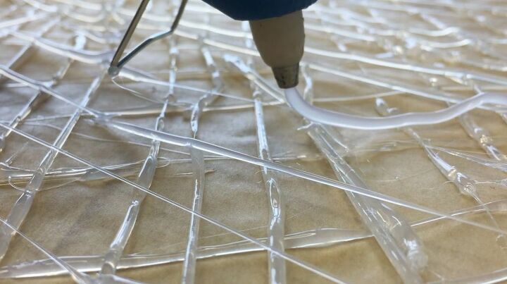 Bir çeşit sıcak tutkal ağı için gidiyorsun. Ne kadar çok katman ve çizgi oluşturursanız, yer paspanız o kadar sert olur.