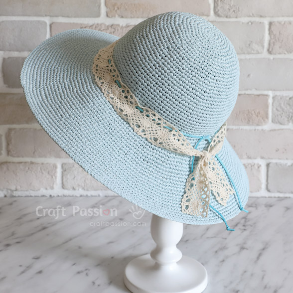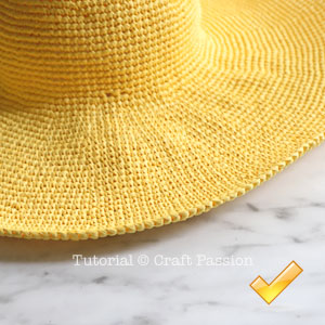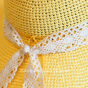 Plaj şapkasını düz bırakabilir veya aynı zamanda boyut ayarlayıcı olarak da işlev gören dekoratif bir şapka bandı ekleyebilirsiniz (aşağıdaki resme bakın).