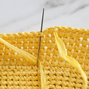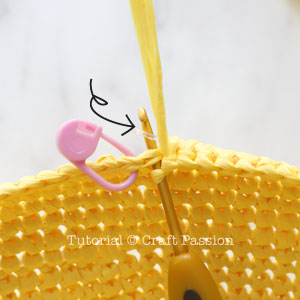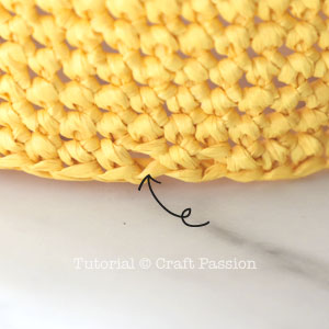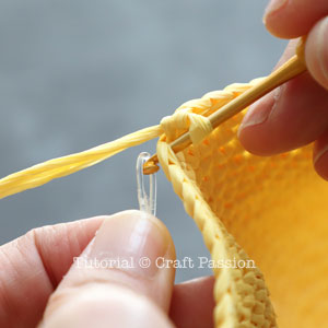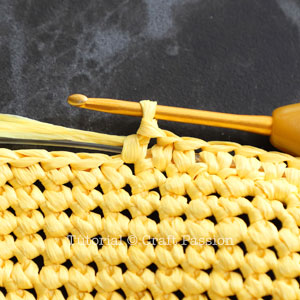 Oltayı dikişlerle birlikte taşıyarak, ipi bir önceki turun üstüne yerleştirmeniz ve her zamanki gibi kroşe yapmanız anlamına gelir. Bu doğal olarak dikişlerdeki çizgiyi gizleyecektir.