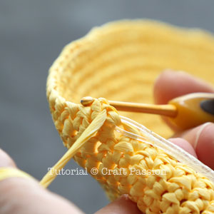 Tığ deseni taçtan başlar ve sürekli bir turda ağzına doğru ilerler.